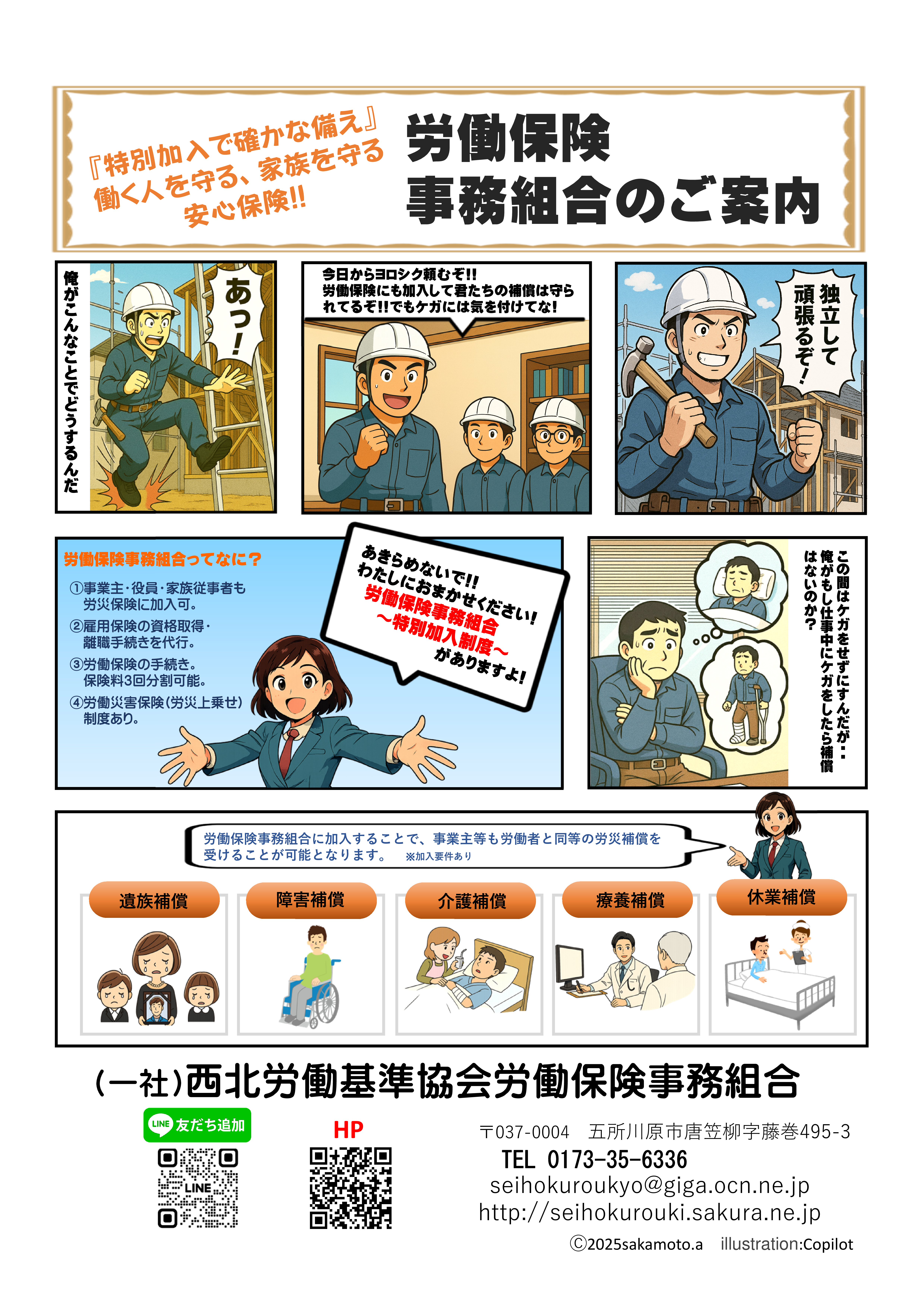 ⑤労働災害共済(上乗せ保険)に加入できます。